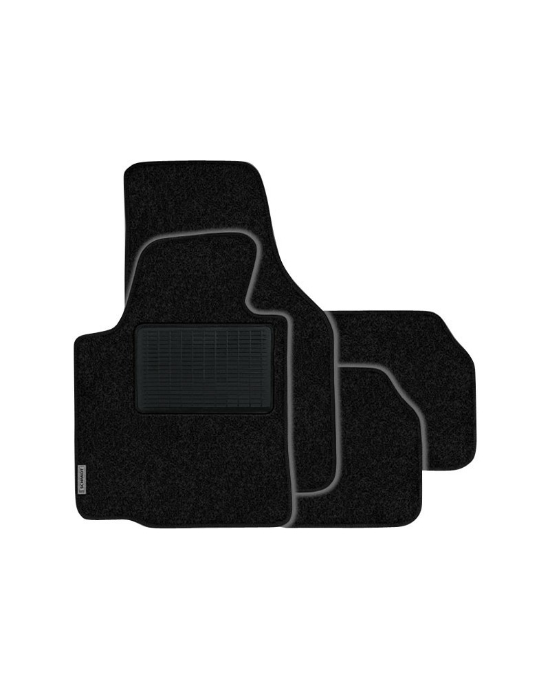 Sada praktických koberečků do auta THURINGEN, profesionálně vyrobených z nesmírně stálé a pevné kobercové krytiny s vysokou odolností vůči prodření. Použitý materiál má unikátní strukturu vlasu, která zastaví písek, prach a jiné nečistoty padající z bot. Tekuté látky vnášené do vozidla na botách se do materiálu vsakují. Koberečky jsou nesmírně stálé a pevné a zároveň elegantní a vkusné. Velice snadno se čistí a ochrání vás před nutností čistit podlahu auta. Část koberečky pod chodidlem řidiče je zesílena přídavnou vrstvou plastu, který zastavuje větší nečistoty. Vrstva gumového laminátu vespod zabraňuje posouvání koberečku.