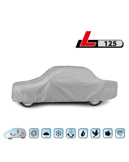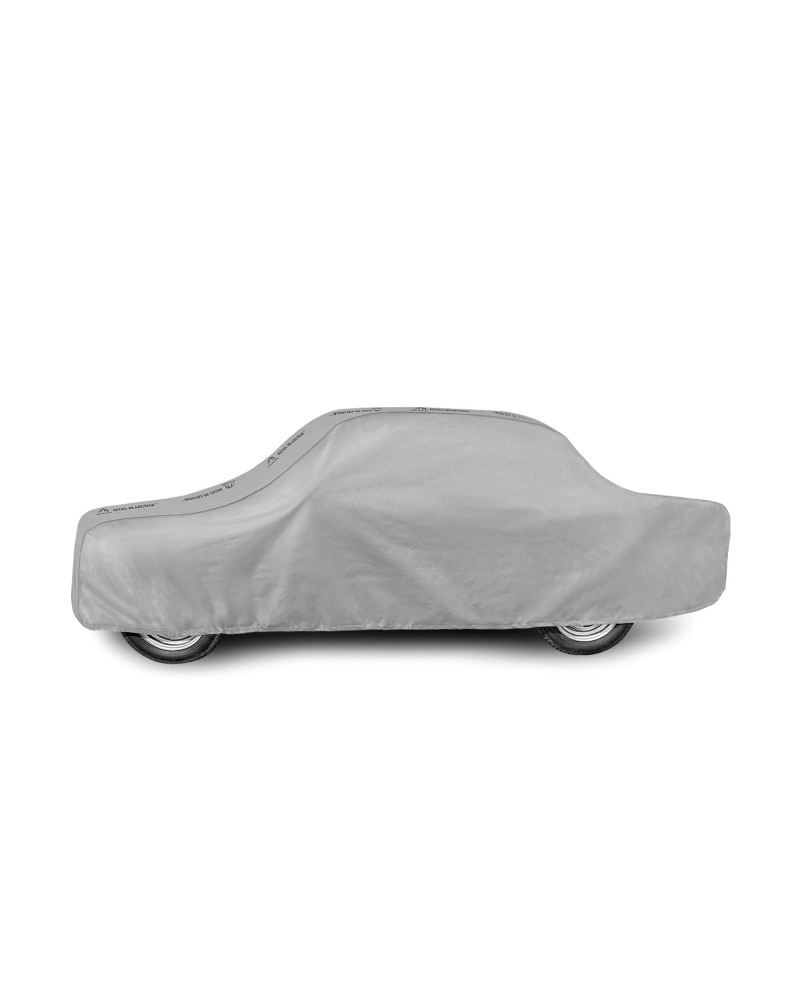 Vysoce kvalitní, celoroční plachta na auto BASIC GARAGE – vodovzdorná a paropropustná. Díky spojení dvou druhů materiálu si plachta zachovává téměř úplnou těsnost dokonce i při intenzivním dešti a zároveň, za kladné teploty okolí, odvádí ven vlhkost hromadící se pod plachtou. Plachta chrání celé auto společně s jeho dolní částí před nepříznivým vlivem vnějšího prostředí. Je vyrobena z na vnitřní straně hladkého materiálu, nepoškrábe karosérii. Upevňuje se s pomocí stahovacího lemu s lankem kolem celého vozidla, v případě správného zavázání zaručuje bezpečnost i během nárazů větru. Díky širokému spektru tvarů a velikostí jsou plachty z této řady (stejně jako i naše jiné plachty) dobře přizpůsobené konkrétním autům. Plachty Basic Garage mají ověřenou odolnost proti slunci a jiným atmosférickým faktorům, což potvrzuje písemná záruka 25 měsíců přiložená ke každému výrobku.