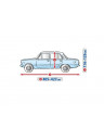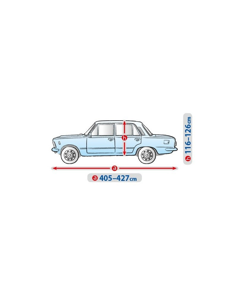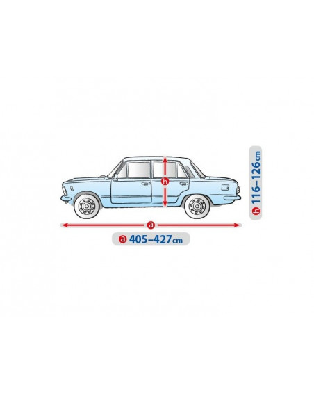 Textilní materiál, z něhož je plachta vyrobena, se přizpůsobí jak o něco menšímu, tak i většímu autu podobného tvaru, s rozměry nepřekračujícímu výše uvedený obvod.