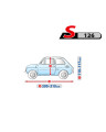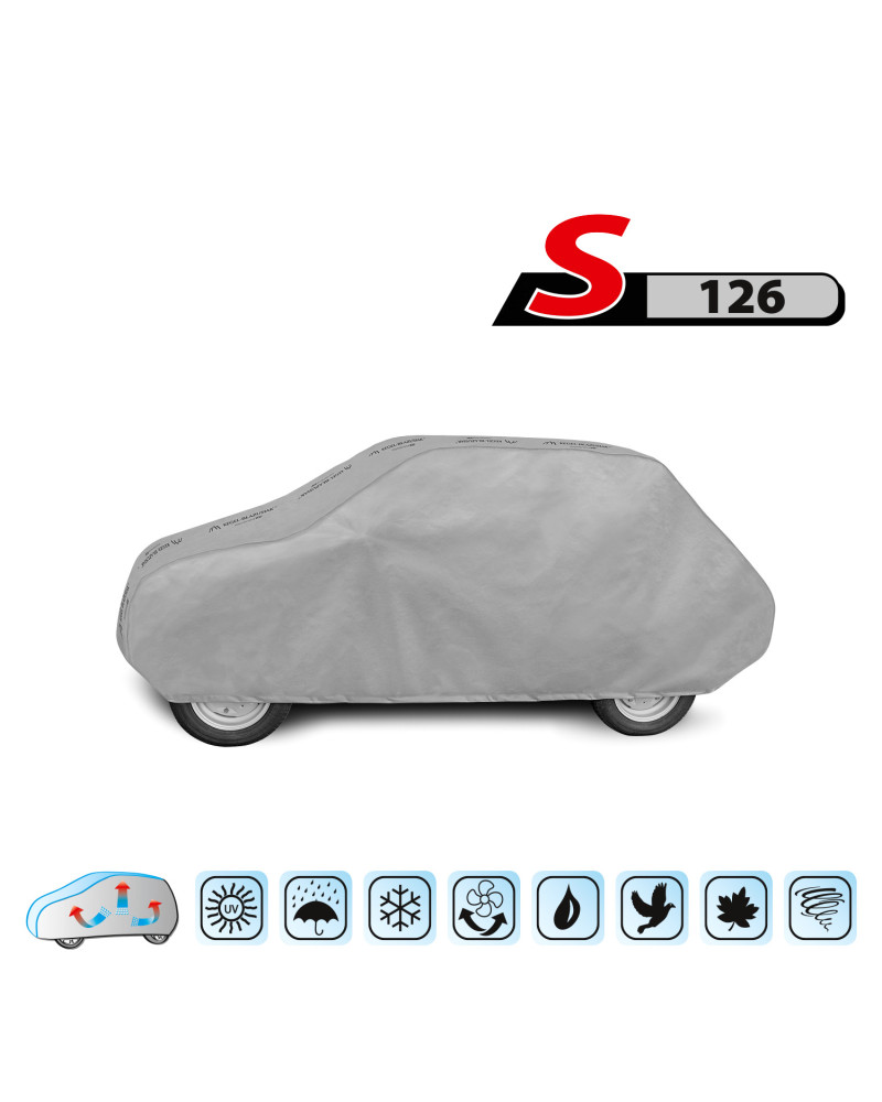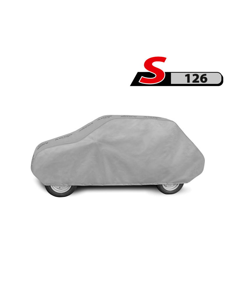 Textilní materiál, z něhož je plachta vyrobena, se přizpůsobí jak o něco menšímu, tak i většímu autu podobného tvaru, s rozměry nepřekračujícímu výše uvedený obvod.