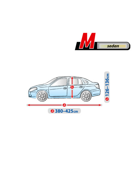 Textilní materiál, z něhož je plachta vyrobena, se přizpůsobí jak o něco menšímu, tak i většímu autu podobného tvaru, s rozměry nepřekračujícímu výše uvedený obvod.