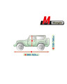 Textilní materiál, z něhož je plachta vyrobena, se přizpůsobí jak o něco menšímu, tak i většímu autu podobného tvaru, s rozměry nepřekračujícímu výše uvedený obvod.