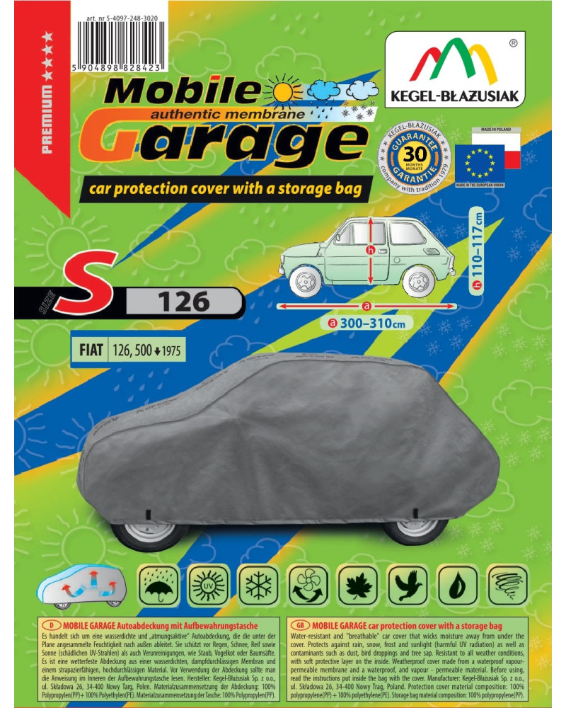 Vysoce kvalitní plachty na auto MOBILE GARAGE- voděodolné a paropropustné. Jsou ušité z nepromokavé paropropustné membrány a nesnadno promokavých materiálů, které velice dobře propouštějí páru, zachovávají si téměř naprostou těsnost a zároveň odvádějí vlhkost hromadící se pod potahem. Chrání celé auto společně s jeho dolní částí před škodlivým vlivem prostředí. Jsou odolné vůči působení UV záření. Upevňuje se s pomocí stahovacího lemu s lankem kolem celého vozidla, v případě správného zavázání zaručuje bezpečnost i během nárazů větru. Díky širokému spektru tvarů a barev jsou potahy dobře přizpůsobeny různým automobilům. Poskytnuta až do 30-měsíční záruka vám dá jistotu, že kupujete nejvyšší kvality výrobku.