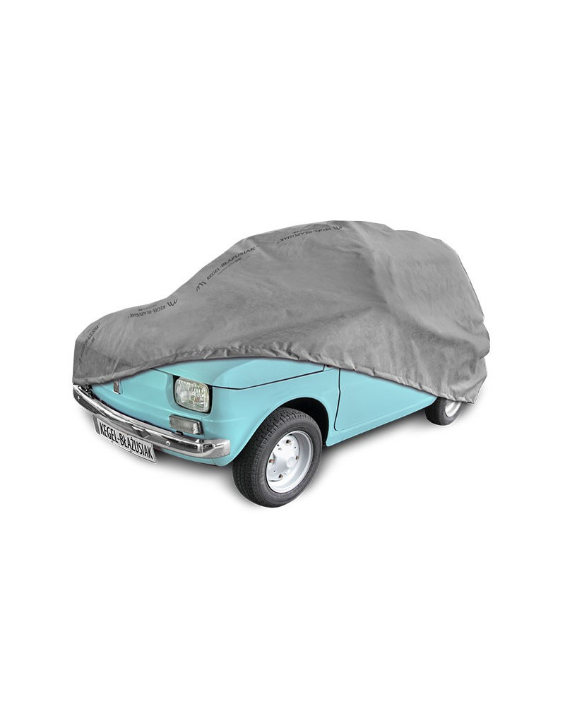 Textilní materiál, z něhož je plachta vyrobena, se přizpůsobí jak o něco menšímu, tak i většímu autu podobného tvaru, s rozměry nepřekračujícímu výše uvedený obvod.
