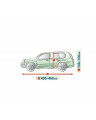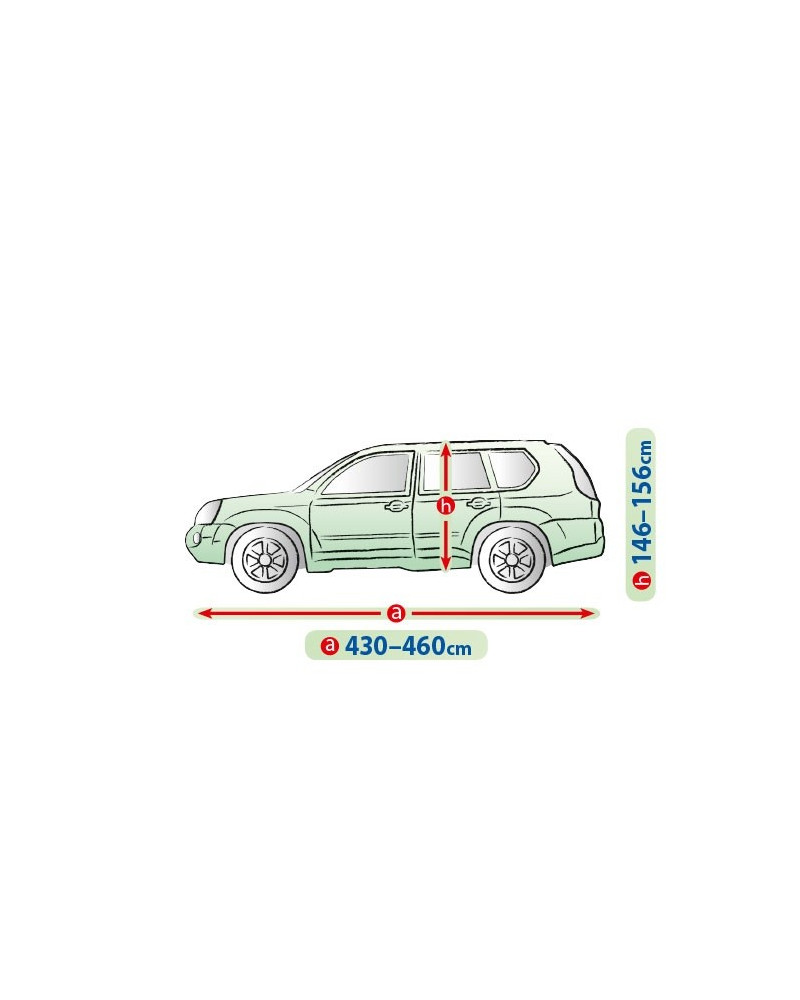 Textilní materiál, z něhož je plachta vyrobena, se přizpůsobí jak o něco menšímu, tak i většímu autu podobného tvaru, s rozměry nepřekračujícímu výše uvedený obvod.