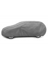 Je vyrobena z nesmírně stálého a silného, vysoce kvalitního materiálu, který se vyznačuje mnoha výjimečnými vlastnostmi. Horní pás materiálu, táhnoucí se přes masku, střechu a zavazadlový prostor, se vyrábí z čtyřivrstvé, voděodolné MEMBRÁNY, která je paropropustná, a boky (2 vrstvy) z nesnadno promokavého materiálu SPUNBOND, který velmi dobře propouští páru. Speciální vlastnosti materiálu a správná konstrukce plachty zajišťují efektivní oběh vzduchu uvnitř ní. Každý příznak vlhkosti, která se shromáždí pod potahem, se rychle odpaří, což zabraňuje rezivění auta. Z vnitřní strany plachty je materiál zcela hladký, bezpečný pro vozidlo, protože ho nepoškrábe ani nesetře lak a to dokonce ani při silných nárazech větru. Plachta má popelavou barvu, která je nesmírně praktická a zároveň skvěle vypadá. Středem plachty probíhá nápis obsahující název a logo firmy a název materiálu, z něhož byla vyrobena, to vám zaručí původnost a vysokou kvalitu výrobku. Výrobek se velmi snadno a rychle instaluje. Potah zakrývá celý povrch auta společně s jeho dolními částmi, lehce přesahuje spodní část a díky stahovacímu lemu s lankem kolem celého vozidla se silně drží auta a zabraňuje posunování potahu. Jen správné šněrování zaručí odolnost vázání. Po složení nezabere příliš místa, proto ho můžete vždy vozit s sebou.