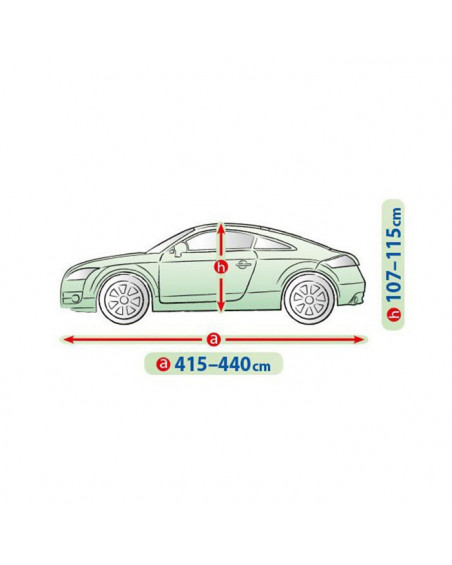 Textilní materiál, z něhož je plachta vyrobena, se přizpůsobí jak o něco menšímu, tak i většímu autu podobného tvaru, s rozměry nepřekračujícímu výše uvedený obvod.
