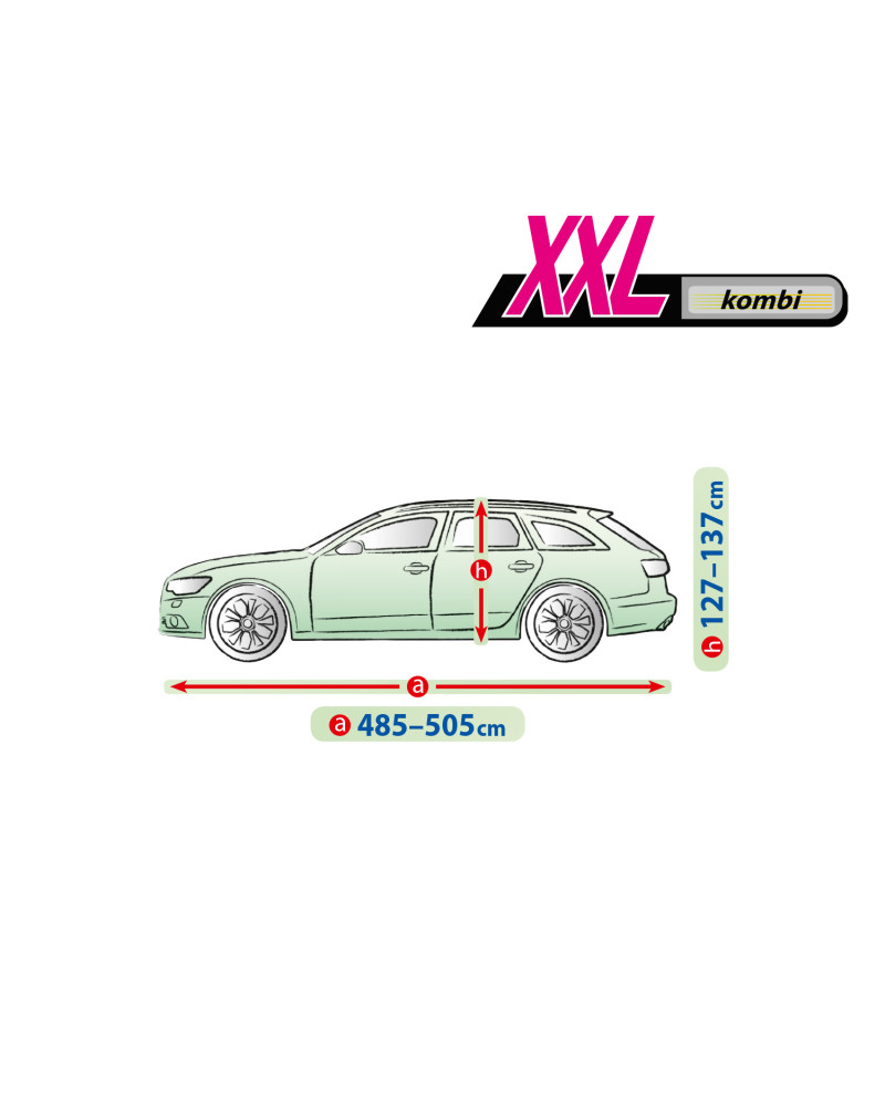 Textilní materiál, z něhož je plachta vyrobena, se přizpůsobí jak o něco menšímu, tak i většímu autu podobného tvaru, s rozměry nepřekračujícímu výše uvedený obvod.