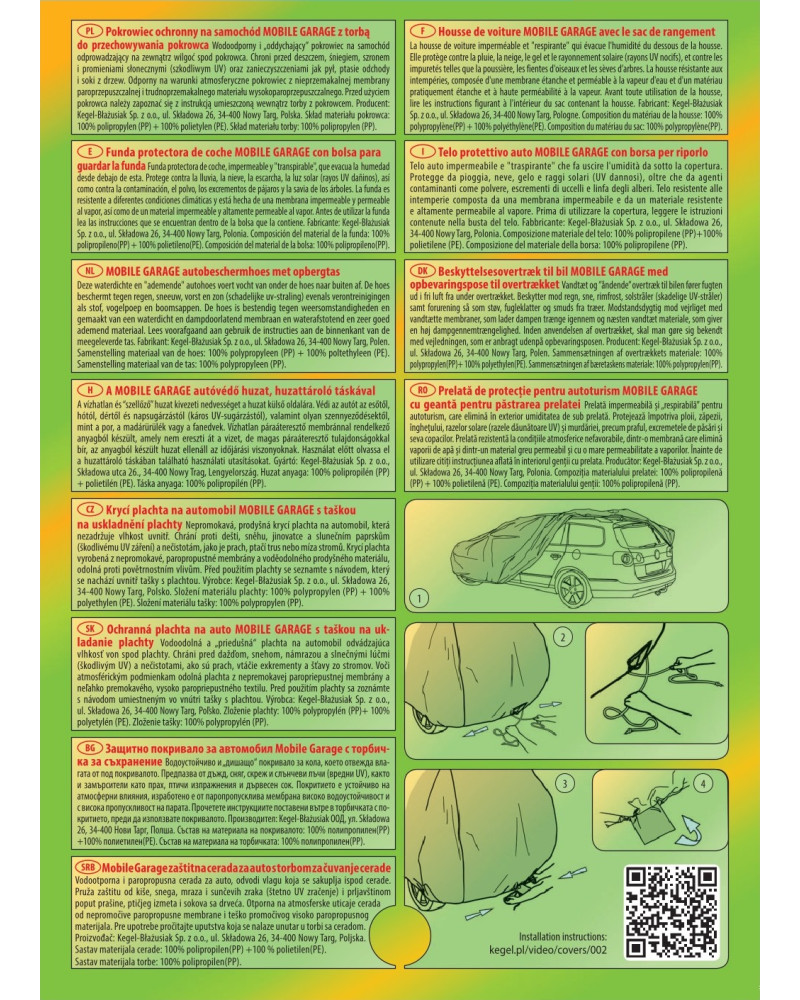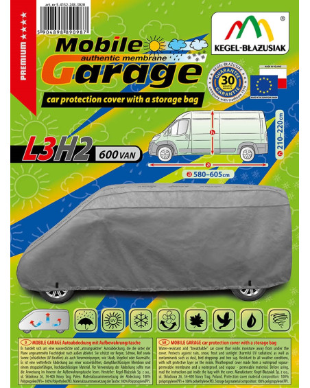 Vysoce kvalitní plachty na auto MOBILE GARAGE- voděodolné a paropropustné. Jsou ušité z nepromokavé paropropustné membrány a nesnadno promokavých materiálů, které velice dobře propouštějí páru, zachovávají si téměř naprostou těsnost a zároveň odvádějí vlhkost hromadící se pod potahem. Chrání celé auto společně s jeho dolní částí před škodlivým vlivem prostředí. Jsou odolné vůči působení UV záření. Upevňuje se s pomocí stahovacího lemu s lankem kolem celého vozidla, v případě správného zavázání zaručuje bezpečnost i během nárazů větru. Díky širokému spektru tvarů a barev jsou potahy dobře přizpůsobeny různým automobilům. Poskytnuta až do 30-měsíční záruka vám dá jistotu, že kupujete nejvyšší kvality výrobku.