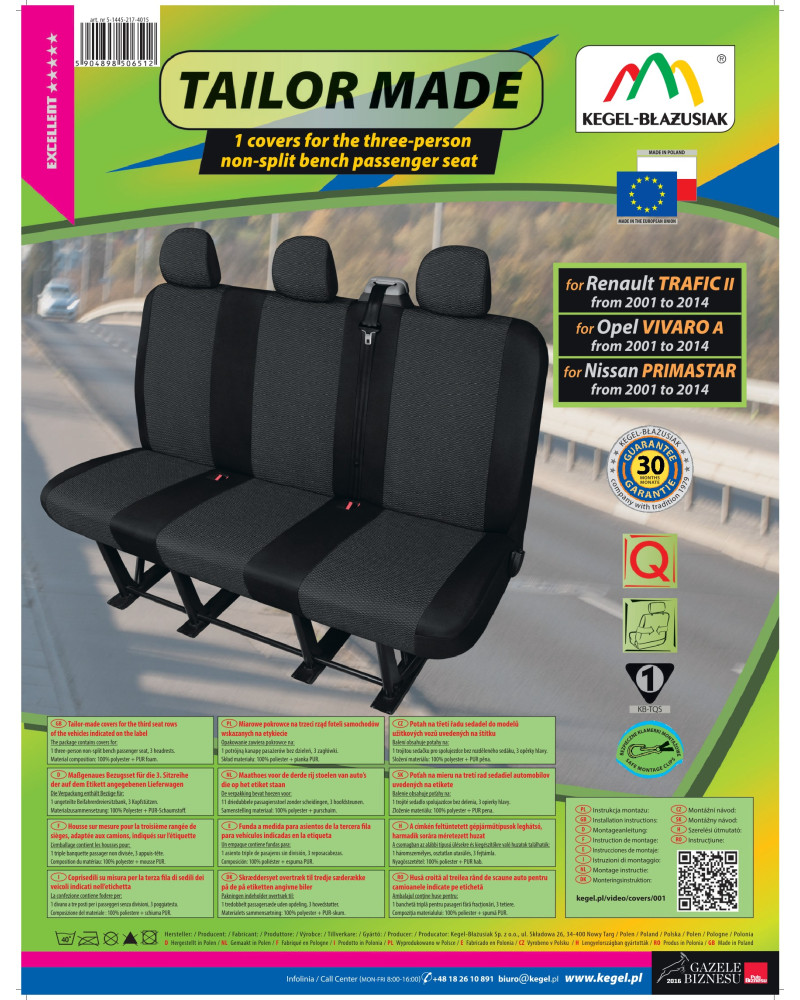 Přizpůsobené potahy ARES - praktické a bezpečné autopotahy navržené s ohledem na majitele dodávkových automobilů a mikrobusů - profesionálně ušité z hoření zpomalující žakárové látky vysoké kvality. Přesně z těch samých materiálů se vyrábějí originální potahy na sedačkách nových vozidel pro automobilky. Pečlivě ušité a důkladně propracované. Díky správnému střihu a vhodným rozměrům se skvěle přizpůsobí tvaru sedadel konkrétních modelů automobilů. Díky potažení PUR pěnou na vnitřní straně se vůči sedačce neposouvá. Potahy ARES efektivně chrání čalounění před prodřením, znečištěním a zničením, také uvnitř vozidla skvěle vypadají. Potahy jsou celé vyrobené z pevné, odolné, silné žakárové látky. Látka má černou barvu - černá s jemnou šedou texturou ideálně zapadne do interiéru každého automobilu. Poskytnuta až do 25-měsíční záruka vám dá jistotu, že kupujete nejvyšší kvality výrobku.