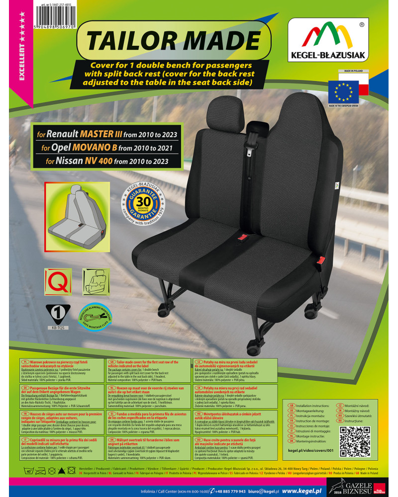 Potahy na miru ARES - praktické a bezpečné autopotahy navržené s ohledem na majitele dodávkových automobilů a mikrobusů - profesionálně ušité z hoření zpomalující žakárové látky vysoké kvality. Přesně z těch samých materiálů se vyrábějí originální potahy na sedačkách nových vozidel pro automobilky. Pečlivě ušité a důkladně propracované. Díky správnému střihu a vhodným rozměrům se skvěle přizpůsobí tvaru sedadel konkrétních modelů automobilů. Díky potažení PUR pěnou na vnitřní straně se vůči sedačce neposouvá. Potahy ARES efektivně chrání čalounění před prodřením, znečištěním a zničením, také uvnitř vozidla skvěle vypadají. Potahy jsou celé vyrobené z pevné, odolné, silné žakárové látky. Látka má černou barvu - černá s jemnou šedou texturou ideálně zapadne do interiéru každého automobilu. Poskytnuta až do 25-měsíční záruka vám dá jistotu, že kupujete nejvyšší kvality výrobku.