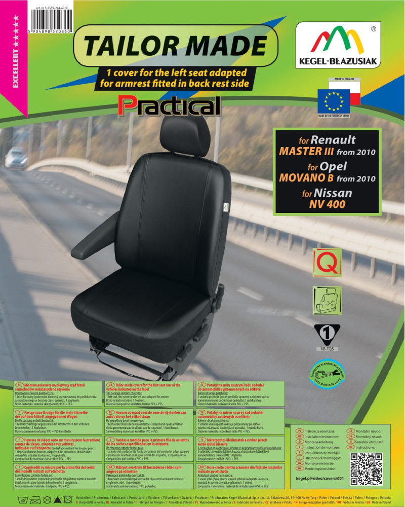 Přizpůsobené potahy PRACTICAL byly vyrobeny z nesmírně stálé ekokůže nové generace, což v kombinaci s péčí o zakončení i těch nejmenších detailů uspokojí dokonce i ty nejnáročnější zákazníky. Správně nasazené potahy jsou prakticky k nerozeznání od originálního koženého čalounění sedadel a tohoto efektu lze dosáhnout za skutečně nízkou cenu. Potah se vyrábí ze silného a stálého materiálu a díky správnému střihu se dobře přizpůsobí sedačkám a přilne k nim, čímž se zabraňuje posouvání potahu. Potahy do auta PRACTICAL velmi dobře chrání originální čalounění auta před prodřením a zničením a vkusný, moderní styl vyvolává pozitivní estetické dojmy. Potah se velice snadno instaluje a čistí. Poctivé provedení zaručuje vysokou kvalitu a dlouhou dobu používání. Nepromokavý, nešpinící se a nesmírně odolný materiál zajišťuje praktické používání. Nabídka cílí na majitele dodávkových automobilů, kteří se chtějí postarat o interiér svých vozidel a dodat jim šik a eleganci. Černá univerzální barevnost ideálně doplní interiér každého vozidla. Potahy vypadají skvěle v každém autě. Jsou výjimečně elegantní, proto také díky nim každý interiér získá na úrovni a na půvabu.