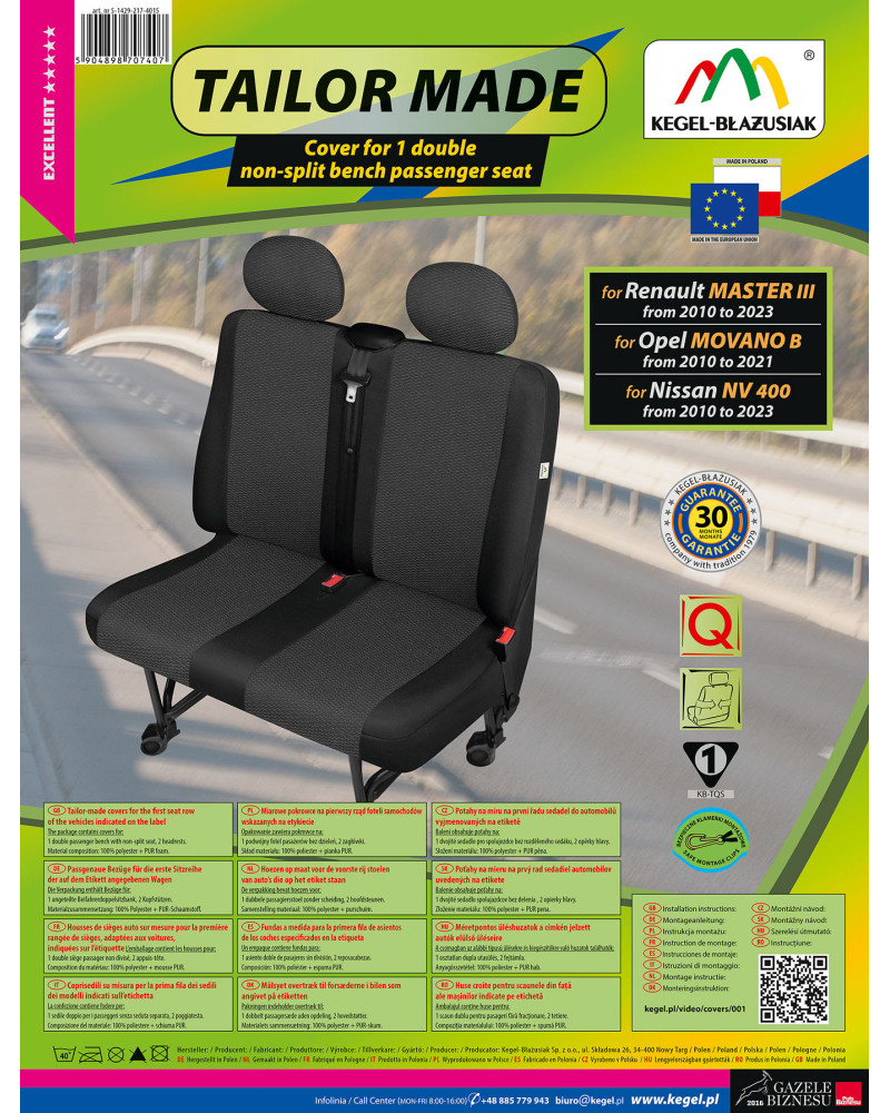 Potahy na miru ARES - praktické a bezpečné autopotahy navržené s ohledem na majitele dodávkových automobilů a mikrobusů - profesionálně ušité z hoření zpomalující žakárové látky vysoké kvality. Přesně z těch samých materiálů se vyrábějí originální potahy na sedačkách nových vozidel pro automobilky. Pečlivě ušité a důkladně propracované. Díky správnému střihu a vhodným rozměrům se skvěle přizpůsobí tvaru sedadel konkrétních modelů automobilů. Díky potažení PUR pěnou na vnitřní straně se vůči sedačce neposouvá. Potahy ARES efektivně chrání čalounění před prodřením, znečištěním a zničením, také uvnitř vozidla skvěle vypadají. Potahy jsou celé vyrobené z pevné, odolné, silné žakárové látky. Látka má černou barvu - černá s jemnou šedou texturou ideálně zapadne do interiéru každého automobilu. Poskytnuta až do 25-měsíční záruka vám dá jistotu, že kupujete nejvyšší kvality výrobku.
