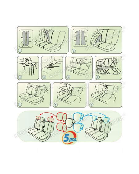 5. Nasaďte nejlépe sedící potahy na opěrky hlavy (ostatní potahy jsou navíc)