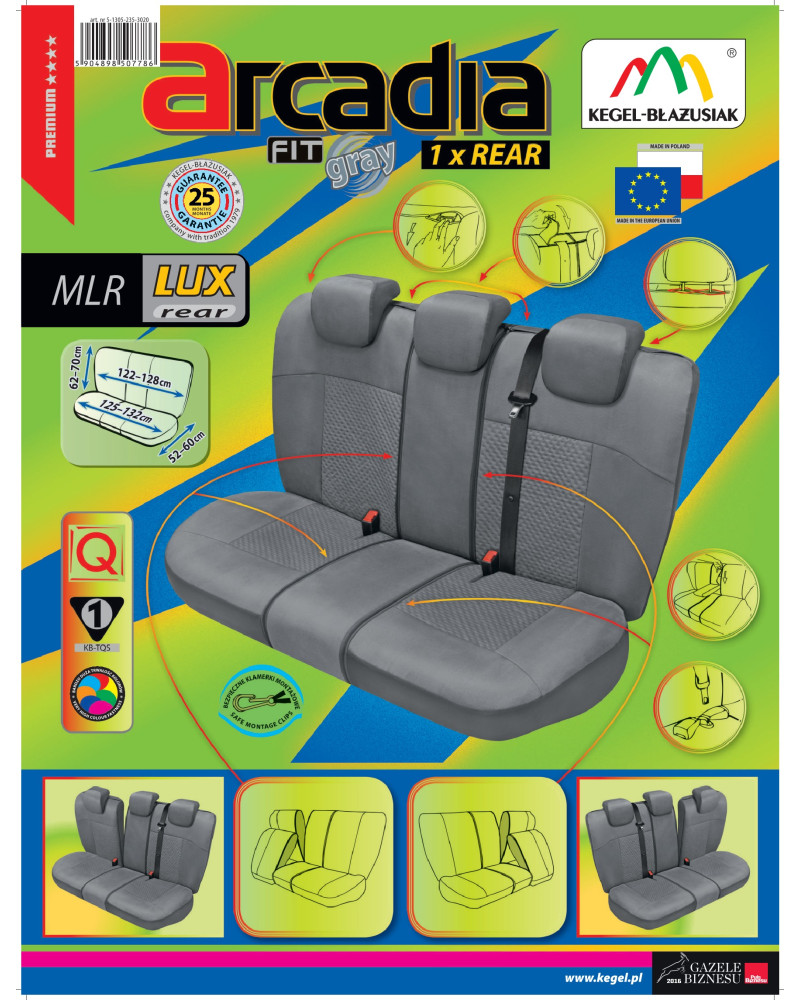 Prispôsobené poťahy ARCADIA sú veľmi elegantné a vkusné poťahy do osobných áut, ktoré robia dojem. Celé sú ušité z vysoko kvalitného semišového materiálu typu Alcantara v popolavom odtieni a vyznačujú sa nesmierne atraktívnym, originálnym vzhľadom. Okrem toho sú veľmi pevné a stále - spĺňajú najvyššie odolnostné normy pre čalúnnické materiály. Materiál použitý na zhotovenie bočných dielov bol podlaminovaný PUR penou, ktorá poťahom umožňuje stabilne sa usadiť na sedadle. Materiál v strednej časti poťahov bol spojený s pomocou ultrazvuku s buničitou látkou, do ktorej bol vytlačený originálny, jemný vzor. Nami ponúkané poťahy ARCADIA vyrábame v praktickej a elegantnej popolavej farbe. Zladená, jemná farebnosť sa ideálne hodí do interiéru každého auta. Drobná vzorka v strednej časti, vysoká kvalita materiálu a farba dodávajú interiéru úroveň, eleganciu a štýlový vzhľad. Poťahy ARCADIA sa vyznačujú dlhou životnosťou, odolnosťou voči oteru a ľahko údržbou. Okrem toho sa vyznačujú dobrým pomerom kvality a ceny, pretože aj napriek tomu že sú skutočne vysoko kvalitné, je ich cena veľmi dobrá. Poskytnuta až do 25-měsíční záruka vám dá jistotu, že kupujete nejvyšší kvality výrobku.