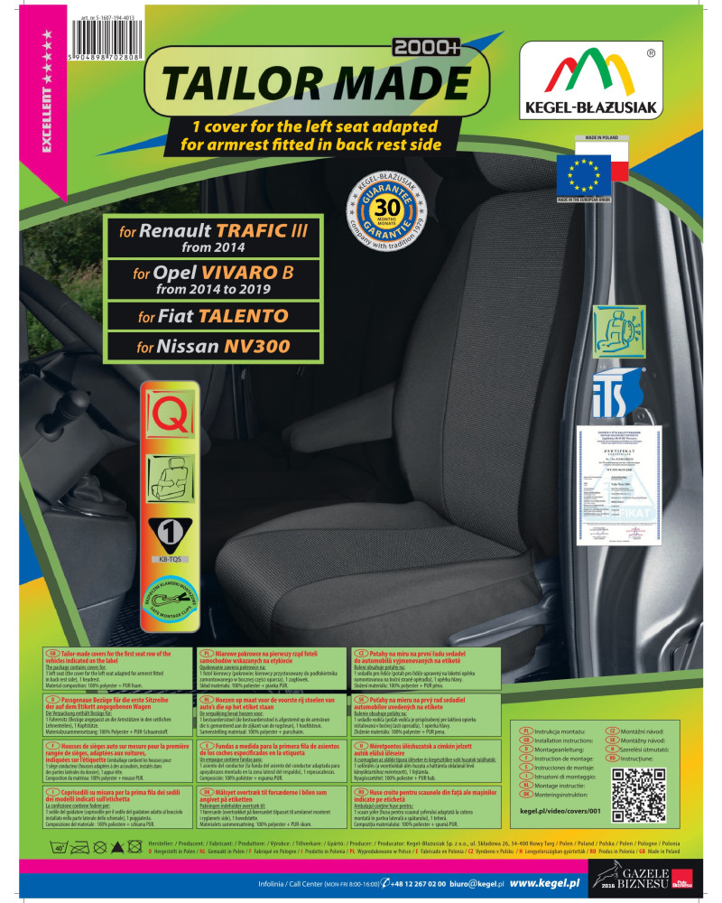 Potahy mají nezbytné, uzavíratelné otvory, které umožňují jejich natažení bez nutnosti vytahovat opěrky hlavy a zhotovovat další otvory. Předností potahů TAILOR MADE je to, že kryjí celý zadní povrch opěradla. Díky této vlastnosti vypadají velmi dobře také zezadu sedačky a zároveň ji chrání před znečištěním a poškozením (to je důležité především pro osoby, které mají malé děti). Sada je vybavena speciálními plastovými sponami, do materiálu jsou všitá připevnění, což s pomocí přiloženého obrázkového návodu k obsluze zajišťuje velmi snadnou instalaci. Potahy lze bez obav prát na 40° - podle pokynů na štítku. Výrobek renomované firmy Kegel-Błażusiak, největšího výrobce a exportéra v odvětví autopotahů a pracovních oděvů. Vyrobeno v Polsku, především z polských surovin, za dodržení všech kvalitativních standardů Evropské unie. Nákupem potahů Kegel-Błażusiak podporujete polskou ekonomiku a chráníte polská pracovní místa a také máte jistotu, že si kupujete výrobek nejvyšší kvality.