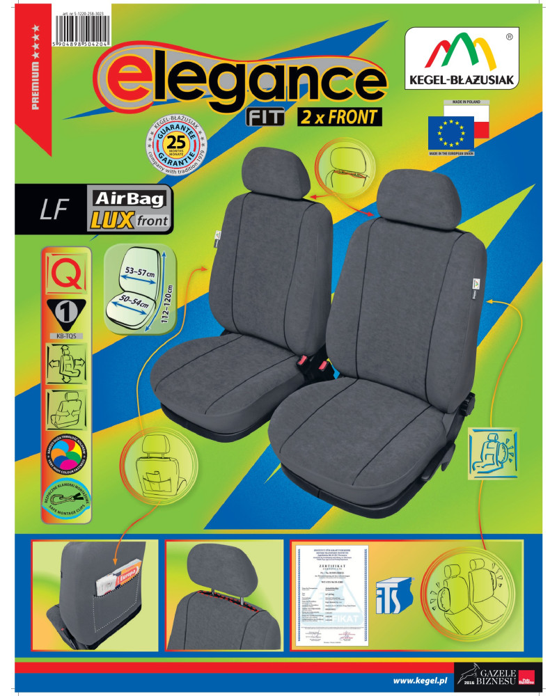 Přizpůsobené potahy ELEGANCE – to jsou nesmírně elegantní a bezpečné potahy do osobních automobilů. Pečlivě navrženy s ohledem na konkrétní modely aut, ideálně se přizpůsobí sedačkám a díky potažení polyuretanovou pěnou dobře přiléhají k čalounění, což zabraňuje posunu potahů vůči sedačkám (použití síťky - řešení, které je navrhované konkurencí, tuto funkci nenaplňuje). Proslavily se příjemnou a měkkou velurovou látkou, která vypadá nesmírně dobře uvnitř každého auta. Jsou vyrobeny z toho nejkvalitnějšího velurového materiálu nejvyšší úrovně. Jde o zvláštní čalounickou látku, odolnou vůči prodření a roztržení. Autopotahy ELEGANCE se vyznačují estetickým a pečlivým provedením a důkladným zakončením. Originální čalounění automobilu díky nim zůstane po delší dobu v dobrém stavu. Šedá, klidná, jednotná barevnost osvěží interiér vašeho auta a dodá mu eleganci a úroveň. Prezentace jde ruku v ruce s funkčností, protože potahy velmi dobře chrání originální čalounění před veškerým znečištěním a před většinou poškození. Staňte se majitelem nejúžasnějšího interiéru!