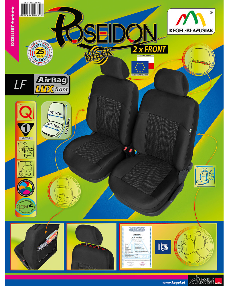 Potahy POSEIDON – dobře přizpůsobené autopotahy určené do konkrétních modelů aut, správně uzpůsobené sedačkám za zohlednění i těch nejmenších detailů konstrukce sedačky (područky, opěrky hlavy). Vlastností odlišující potahy POSEIDON od jiných a jejich velkou předností je zapínaný otvor na područku na levé a na pravé straně sedačky řidiče, což umožňuje nasazení potahu jak na sedačku řidiče s područkami v autech s volantem na levé straně, tak i s volantem na pravé straně (anglická verze). Čalounický materiál, z něhož jsou potahy vyrobeny, je hoření zpomalující žakárová látka - velice stálá a odolná. Potahy velmi dobře chrání originální čalounění před veškerým znečištěním a před většinou poškození. Elegantní, klasická barevnost vypadá velmi dobře uvnitř každého vozidla. Pokud chcete osvěžit interiér svého auta, pokud mu chcete dodat šik vzhled a eleganci - narazili jste na správný výrobek. Svou důvěru nám svěřilo už mnoho zákazníků! Důvěřujte nám i vy! Poskytnuta až do 25-měsíční záruka vám dá jistotu, že kupujete nejvyšší kvality výrobku.