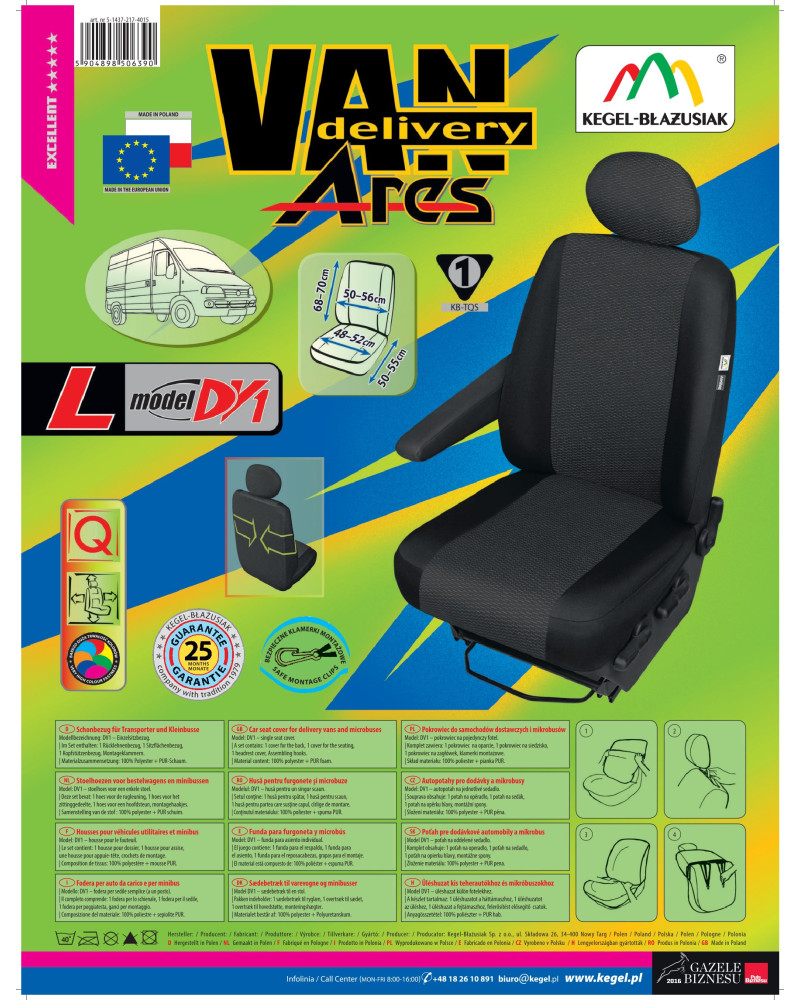 Přizpůsobené potahy ARES - praktické a bezpečné autopotahy navržené s ohledem na majitele dodávkových automobilů a mikrobusů - profesionálně ušité z hoření zpomalující žakárové látky vysoké kvality. Přesně z těch samých materiálů se vyrábějí originální potahy na sedačkách nových vozidel pro automobilky. Pečlivě ušité a důkladně propracované. Díky správnému střihu a vhodným rozměrům se skvěle přizpůsobí tvaru sedadel konkrétních modelů automobilů. Díky potažení PUR pěnou na vnitřní straně se vůči sedačce neposouvá. Potahy ARES efektivně chrání čalounění před prodřením, znečištěním a zničením, také uvnitř vozidla skvěle vypadají. Potahy jsou celé vyrobené z pevné, odolné, silné žakárové látky. Látka má černou barvu - černá s jemnou šedou texturou ideálně zapadne do interiéru každého automobilu. Poskytnuta až do 25-měsíční záruka vám dá jistotu, že kupujete nejvyšší kvality výrobku.