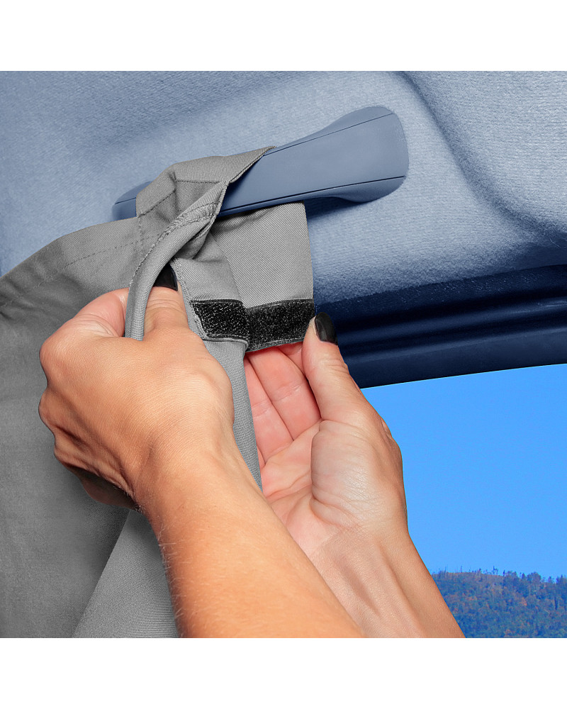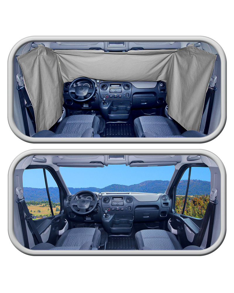 Vnitřní závěs na čelní sklo a přední boční skla, které zakrývají kabinu obytného nebo dodávkového auta. Velmi dobře zakrývá vnitřek kabiny před pohledy zvenčí. Poskytuje pocit soukromí i v zaplněném kempu nebo na parkovišti. Snižuje přehřívání vnitřku vozidla. Snadno se nasazuje a sundává, není nutné ji šroubovat nebo lepit. V dolním okraji závěsu je všité závaží, které ho přidržuje na místě během nastupování a vystupování z auta.