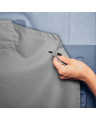 Závěs rozložte uvnitř kabiny auta. V horním okraji závěsu jsou umístěné dvě kapsy, které nasaďte na sluneční clony nad čelním sklem a připevněte je k nim pomocí všitých popruhů se suchým zipem. V horním okraji závěsu po stranách jsou umístěné obdélníky zakončené suchým zipem, s jejichž pomocí závěs připevníte k madlům nad předními dveřmi. Na koncích horního okraje závěsu jsou všité háčky, které zahačte o horní hranu plastového obložení sloupků auta. Potom spodní okraj závěsu se všitým závažím rozložte na palubní desce vozidla co nejblíže spodního okraje čelního skla. Výrobek je určený pouze užívání v zaparkovaném vozidle, je zakázáno ho používat během jízdy.