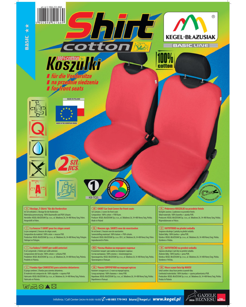 Autotrika COTTON byla vyrobena z vysoce kvalitního přírodního materiálu (100% bavlny), což v kombinaci s pečlivou povrchovou úpravou a péčí i o ty nejmenší detaily uspokojí dokonce i nejnáročnější zákazníky. Díky vhodné a inovativní konstrukci potahy dobře přiléhají k autosedačkám, přiléhají k nim a to, že je z vnitřní strany celý materiál potažen PUR pěnou, zabraňuje jejich posunu. Kryjí celou užitnou část dělených/nedělených sedaček, díky tomu je chrání před poškozením a před znečištěním. Nekryjí ale boky sedačky, díky tomu mohou být bezpečně používané na sedačkách s airbagy. Autotrika ochrání a zároveň velice jasně promění autosedačky, čímž autu dodají jedinečný charakter. Autotrika SHIRT COTTON rovněž splňují přísné uživatelské normy, protože dobře chrání originální čalounění vozidla proti prodření, zničení, znečištění.