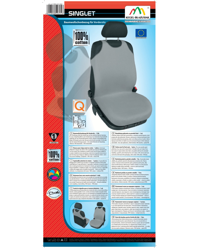Autotrika SINGLET řady BASIC LINE - potah sedaček určený do osobních aut - vyroben z 100% bavlny- přírodního materiálu s velmi vysokou stálostí barev, odolností vůči otěru, roztržení. Díky tomu, že jsou na vnitřní straně podloženy PUR pěnou, potahy dobře přiléhají k sedačce a neposouvají se. Trika se hodí téměř na každou autosedačku. Velice snadno se nasazují a rychle se stahují. Velmi jednoduše se čistí. Autotrika se mezi zákazníky po léta těší neměnnému zájmu. Profesionální provedení z vysoce kvalitních materiálů zaručuje dlouhý čas používání.