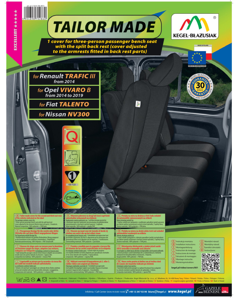 Potahy mají nezbytné, uzavíratelné otvory, které umožňují jejich natažení bez nutnosti vytahovat opěrky hlavy a zhotovovat další otvory. Předností potahů TAILOR MADE je to, že kryjí celý zadní povrch opěradla. Díky této vlastnosti vypadají velmi dobře také zezadu sedačky a zároveň ji chrání před znečištěním a poškozením (to je důležité především pro osoby, které mají malé děti). Sada je vybavena speciálními plastovými sponami, do materiálu jsou všitá připevnění, což s pomocí přiloženého obrázkového návodu k obsluze zajišťuje velmi snadnou instalaci. Potahy lze bez obav prát na 40° - podle pokynů na štítku. Výrobek renomované firmy Kegel-Błażusiak, největšího výrobce a exportéra v odvětví autopotahů a pracovních oděvů. Vyrobeno v Polsku, především z polských surovin, za dodržení všech kvalitativních standardů Evropské unie. Nákupem potahů Kegel-Błażusiak podporujete polskou ekonomiku a chráníte polská pracovní místa a také máte jistotu, že si kupujete výrobek nejvyšší kvality.
