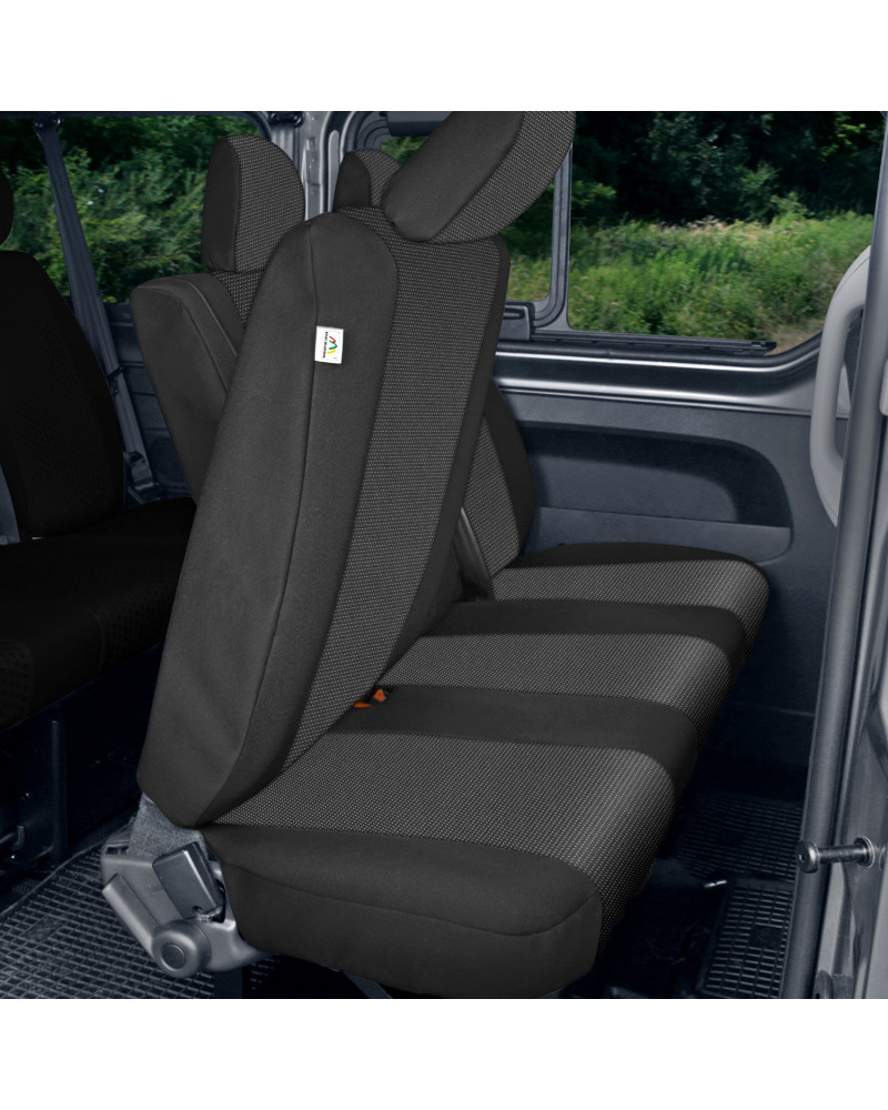 1 potah na trojitou sedačku pro spolujezdce s rozděleným opěradlem (potah upravený pro loketní opěrky namontované na boční straně opěradla)