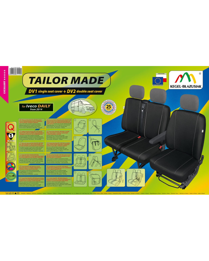 Potahy mají nezbytné, uzavíratelné otvory, které umožňují jejich natažení bez nutnosti vytahovat opěrky hlavy a zhotovovat další otvory. Předností potahů TAILOR MADE je to, že kryjí celý zadní povrch opěradla. Díky této vlastnosti vypadají velmi dobře také zezadu sedačky a zároveň ji chrání před znečištěním a poškozením (to je důležité především pro osoby, které mají malé děti). Sada je vybavena speciálními plastovými sponami, do materiálu jsou všitá připevnění, což s pomocí přiloženého obrázkového návodu k obsluze zajišťuje velmi snadnou instalaci. Potahy lze bez obav prát na 40° - podle pokynů na štítku. Výrobek renomované firmy Kegel-Błażusiak, největšího výrobce a exportéra v odvětví autopotahů a pracovních oděvů. Vyrobeno v Polsku, především z polských surovin, za dodržení všech kvalitativních standardů Evropské unie. Nákupem potahů Kegel-Błażusiak podporujete polskou ekonomiku a chráníte polská pracovní místa a také máte jistotu, že si kupujete výrobek nejvyšší kvality.