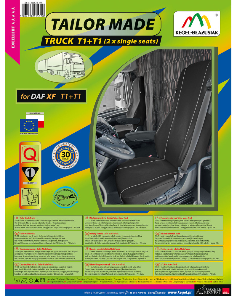 Potahy mají nezbytné, uzavíratelné otvory, které umožňují jejich natažení bez nutnosti vytahovat opěrky hlavy a zhotovovat další otvory. Předností potahů TAILOR MADE je to, že kryjí celý zadní povrch opěradla. Díky této vlastnosti vypadají velmi dobře také zezadu sedačky a zároveň ji chrání před znečištěním a poškozením (to je důležité především pro osoby, které mají malé děti). Sada je vybavena speciálními plastovými sponami, do materiálu jsou všitá připevnění, což s pomocí přiloženého obrázkového návodu k obsluze zajišťuje velmi snadnou instalaci. Potahy lze bez obav prát na 40° - podle pokynů na štítku. Výrobek renomované firmy Kegel-Błażusiak, největšího výrobce a exportéra v odvětví autopotahů a pracovních oděvů. Vyrobeno v Polsku, především z polských surovin, za dodržení všech kvalitativních standardů Evropské unie. Nákupem potahů Kegel-Błażusiak podporujete polskou ekonomiku a chráníte polská pracovní místa a také máte jistotu, že si kupujete výrobek nejvyšší kvality.