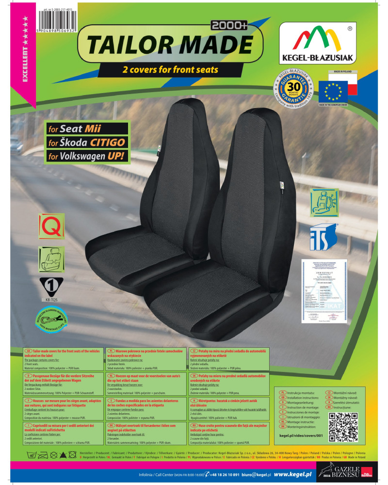 -Bezpečnost našich potahů potvrzují certifikát a zkoušky provedené v Ústavu automobilové dopravy ve Varšavě (Instytut Transportu Samochodowego).