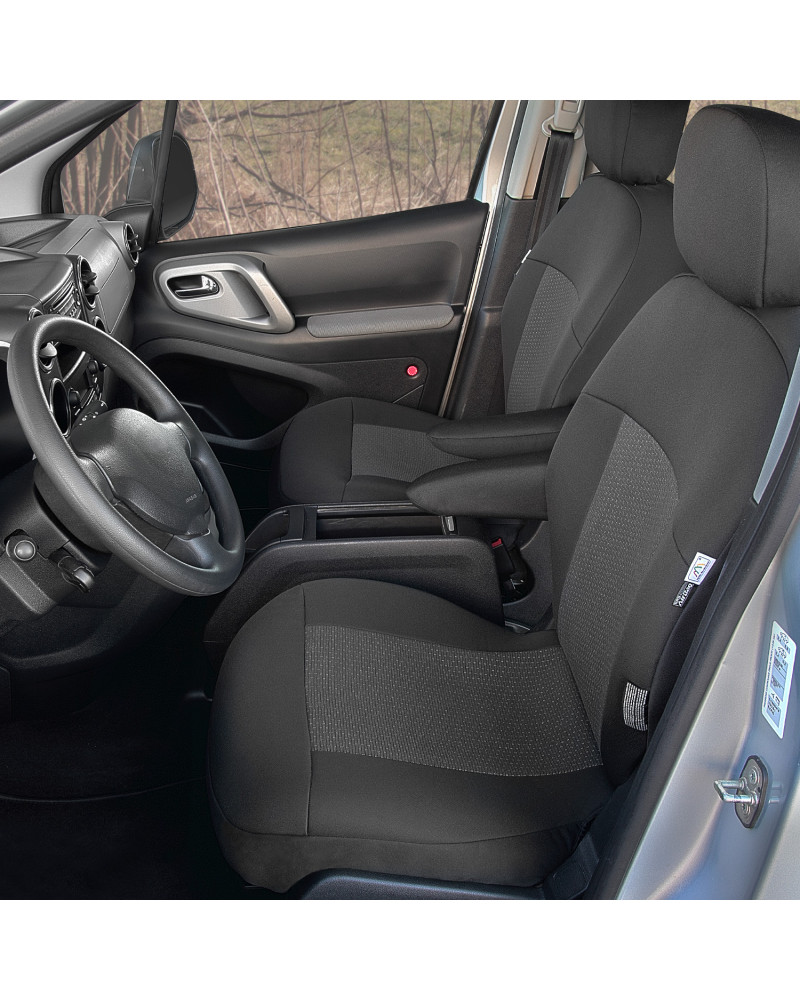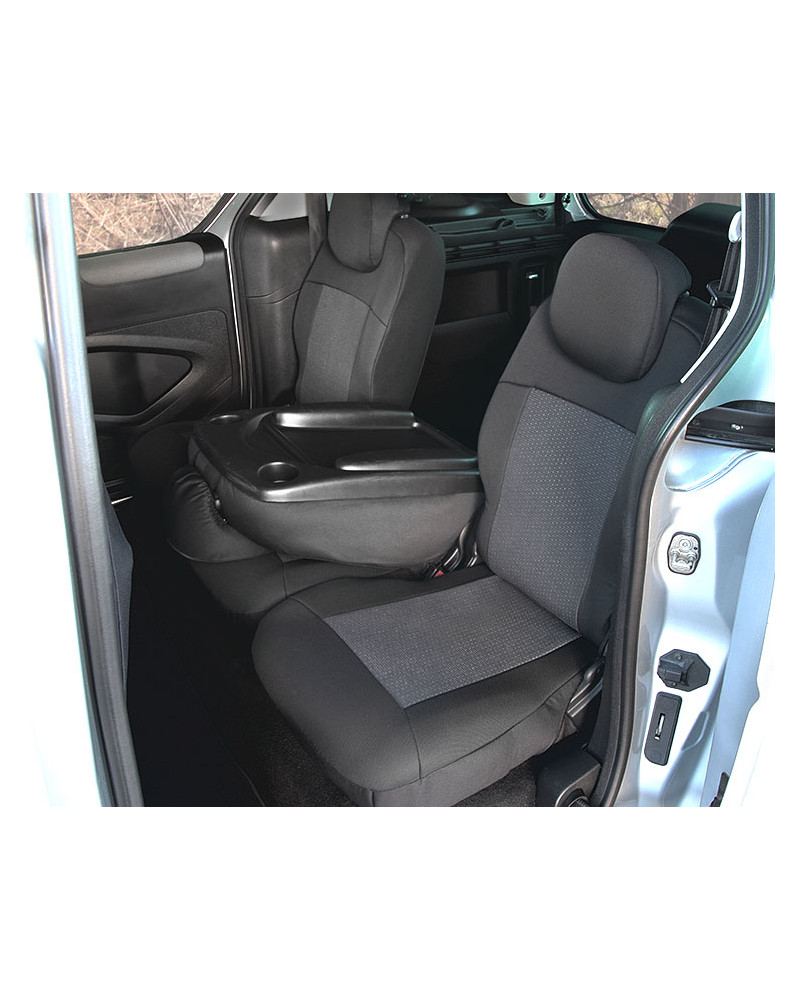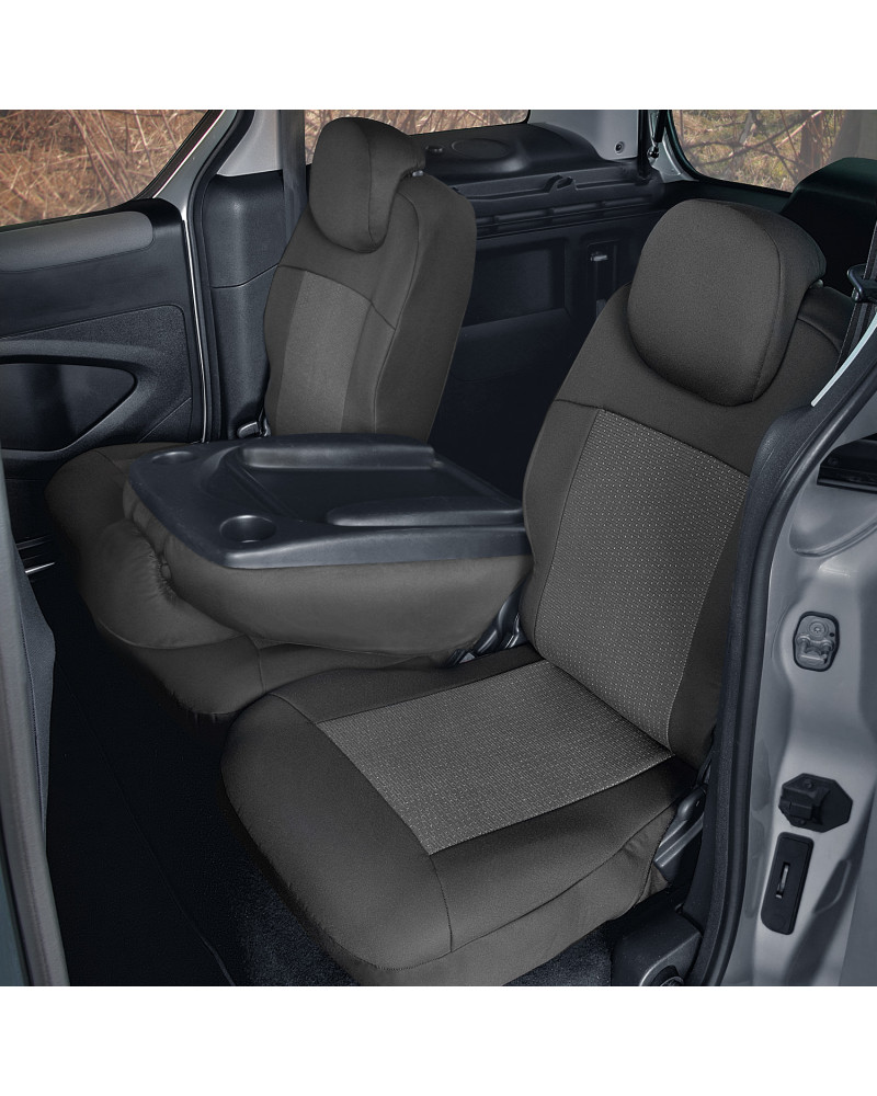 2 přední sedadla (potahy upravené pro loketní opěrky namontované na boční straně opěradla a na stolky v zadní části opěradel)