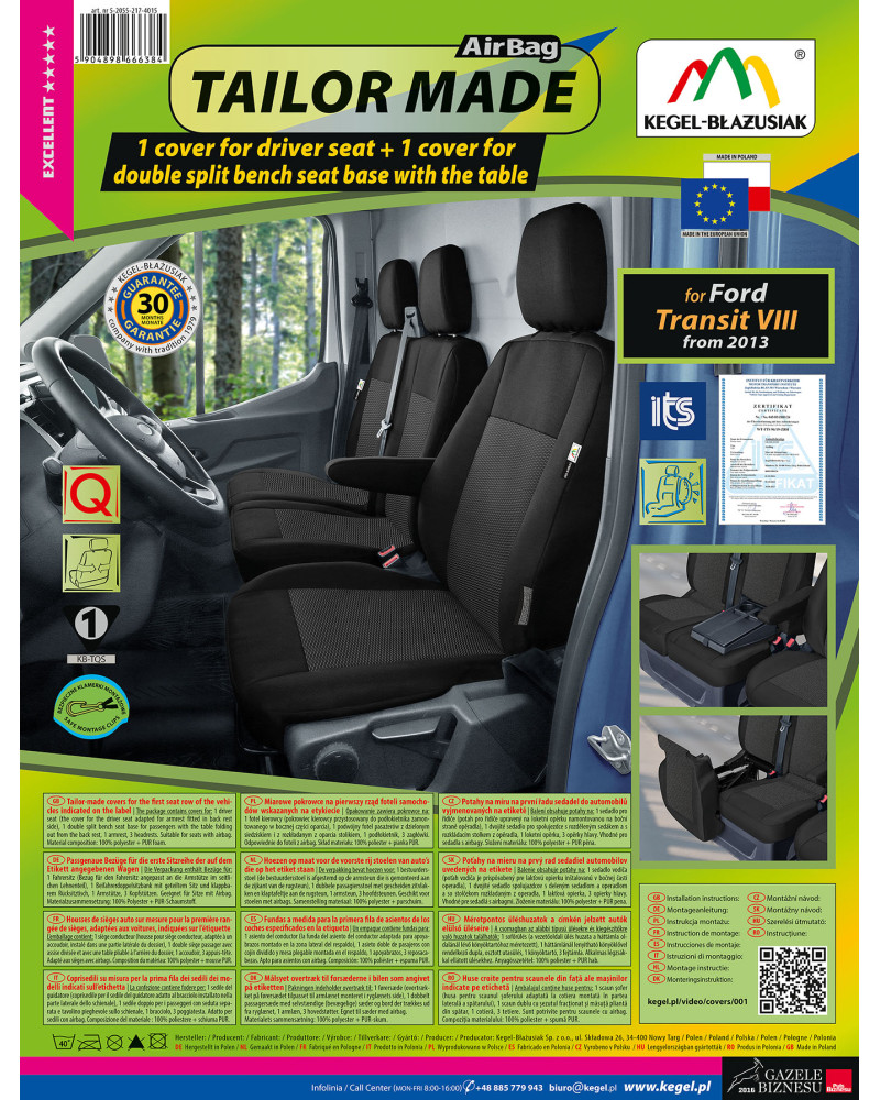 Potahy mají nezbytné, uzavíratelné otvory, které umožňují jejich natažení bez nutnosti vytahovat opěrky hlavy a zhotovovat další otvory. Předností potahů TAILOR MADE je to, že kryjí celý zadní povrch opěradla. Díky této vlastnosti vypadají velmi dobře také zezadu sedačky a zároveň ji chrání před znečištěním a poškozením (to je důležité především pro osoby, které mají malé děti). Sada je vybavena speciálními plastovými sponami, do materiálu jsou všitá připevnění, což s pomocí přiloženého obrázkového návodu k obsluze zajišťuje velmi snadnou instalaci. Potahy lze bez obav prát na 40° - podle pokynů na štítku. Výrobek renomované firmy Kegel-Błażusiak, největšího výrobce a exportéra v odvětví autopotahů a pracovních oděvů. Vyrobeno v Polsku, především z polských surovin, za dodržení všech kvalitativních standardů Evropské unie. Nákupem potahů Kegel-Błażusiak podporujete polskou ekonomiku a chráníte polská pracovní místa a také máte jistotu, že si kupujete výrobek nejvyšší kvality.