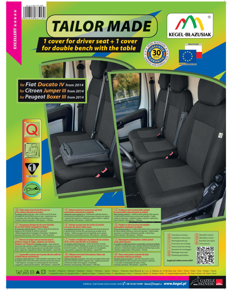 Potahy mají nezbytné, uzavíratelné otvory, které umožňují jejich natažení bez nutnosti vytahovat opěrky hlavy a zhotovovat další otvory. Předností potahů TAILOR MADE je to, že kryjí celý zadní povrch opěradla. Díky této vlastnosti vypadají velmi dobře také zezadu sedačky a zároveň ji chrání před znečištěním a poškozením (to je důležité především pro osoby, které mají malé děti). Sada je vybavena speciálními plastovými sponami, do materiálu jsou všitá připevnění, což s pomocí přiloženého obrázkového návodu k obsluze zajišťuje velmi snadnou instalaci. Potahy lze bez obav prát na 40° - podle pokynů na štítku. Výrobek renomované firmy Kegel-Błażusiak, největšího výrobce a exportéra v odvětví autopotahů a pracovních oděvů. Vyrobeno v Polsku, především z polských surovin, za dodržení všech kvalitativních standardů Evropské unie. Nákupem potahů Kegel-Błażusiak podporujete polskou ekonomiku a chráníte polská pracovní místa a také máte jistotu, že si kupujete výrobek nejvyšší kvality.