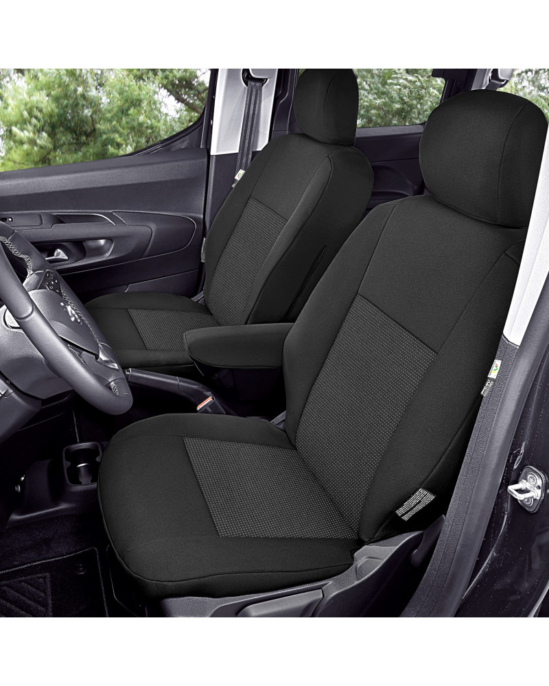 2 potahy na přední sedadla (potahy upravené pro loketní opěrky namontované na boční straně opěradla, potah na sedadlo pro spolujezdce vybavený kapsou)