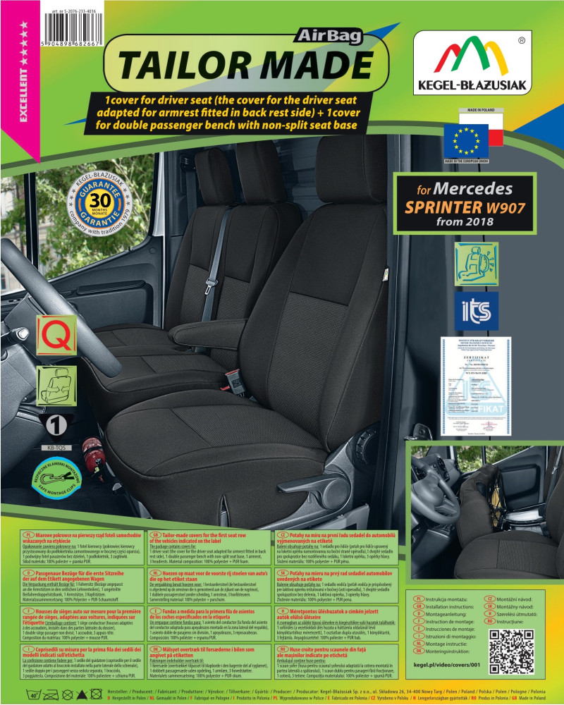 Potahy mají nezbytné, uzavíratelné otvory, které umožňují jejich natažení bez nutnosti vytahovat opěrky hlavy a zhotovovat další otvory. Předností potahů TAILOR MADE je to, že kryjí celý zadní povrch opěradla. Díky této vlastnosti vypadají velmi dobře také zezadu sedačky a zároveň ji chrání před znečištěním a poškozením (to je důležité především pro osoby, které mají malé děti). Sada je vybavena speciálními plastovými sponami, do materiálu jsou všitá připevnění, což s pomocí přiloženého obrázkového návodu k obsluze zajišťuje velmi snadnou instalaci. Potahy lze bez obav prát na 40° - podle pokynů na štítku. Výrobek renomované firmy Kegel-Błażusiak, největšího výrobce a exportéra v odvětví autopotahů a pracovních oděvů. Vyrobeno v Polsku, především z polských surovin, za dodržení všech kvalitativních standardů Evropské unie. Nákupem potahů Kegel-Błażusiak podporujete polskou ekonomiku a chráníte polská pracovní místa a také máte jistotu, že si kupujete výrobek nejvyšší kvality.