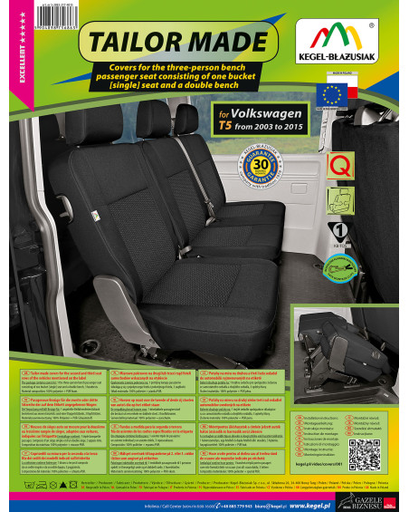 Potahy mají nezbytné, uzavíratelné otvory, které umožňují jejich natažení bez nutnosti vytahovat opěrky hlavy a zhotovovat další otvory. Předností potahů TAILOR MADE je to, že kryjí celý zadní povrch opěradla. Díky této vlastnosti vypadají velmi dobře také zezadu sedačky a zároveň ji chrání před znečištěním a poškozením (to je důležité především pro osoby, které mají malé děti). Sada je vybavena speciálními plastovými sponami, do materiálu jsou všitá připevnění, což s pomocí přiloženého obrázkového návodu k obsluze zajišťuje velmi snadnou instalaci. Potahy lze bez obav prát na 40° - podle pokynů na štítku. Výrobek renomované firmy Kegel-Błażusiak, největšího výrobce a exportéra v odvětví autopotahů a pracovních oděvů. Vyrobeno v Polsku, především z polských surovin, za dodržení všech kvalitativních standardů Evropské unie. Nákupem potahů Kegel-Błażusiak podporujete polskou ekonomiku a chráníte polská pracovní místa a také máte jistotu, že si kupujete výrobek nejvyšší kvality.