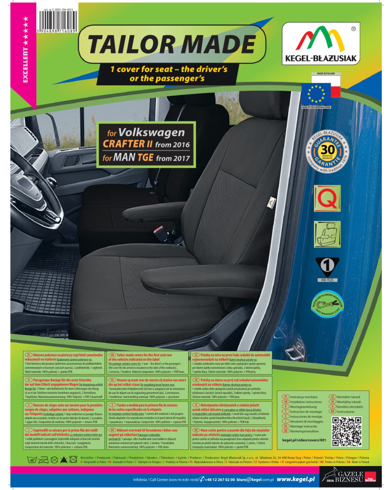Potahy mají nezbytné, uzavíratelné otvory, které umožňují jejich natažení bez nutnosti vytahovat opěrky hlavy a zhotovovat další otvory. Předností potahů TAILOR MADE je to, že kryjí celý zadní povrch opěradla. Díky této vlastnosti vypadají velmi dobře také zezadu sedačky a zároveň ji chrání před znečištěním a poškozením (to je důležité především pro osoby, které mají malé děti). Sada je vybavena speciálními plastovými sponami, do materiálu jsou všitá připevnění, což s pomocí přiloženého obrázkového návodu k obsluze zajišťuje velmi snadnou instalaci. Potahy lze bez obav prát na 40° - podle pokynů na štítku. Výrobek renomované firmy Kegel-Błażusiak, největšího výrobce a exportéra v odvětví autopotahů a pracovních oděvů. Vyrobeno v Polsku, především z polských surovin, za dodržení všech kvalitativních standardů Evropské unie. Nákupem potahů Kegel-Błażusiak podporujete polskou ekonomiku a chráníte polská pracovní místa a také máte jistotu, že si kupujete výrobek nejvyšší kvality.