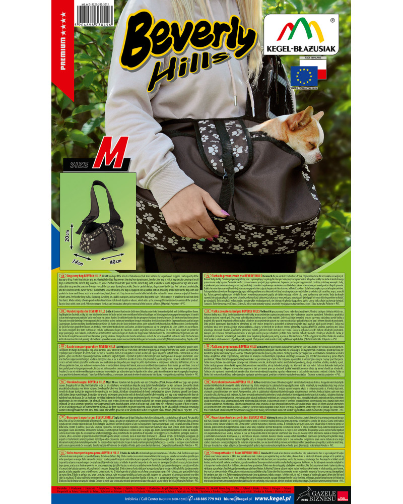 Veľkosť M pre psa veľkosti čivava alebo yorkshirský teriér. Vhodná tiVelikost M pro psa rasy Čivava nebo Jorkširský teriér. Vhodná také pro štěňata větších ras. Nosnost tašky max. 8 kg. S mini vodítkem uvnitř tašky a nastavitelným zapínacím poklopem, který zabraňuje psovi ve vyskočení.
