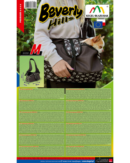 Pohodlná a praktická taška pro nošení malých psů. Poskytuje pohodlí přenášenému psovi i jeho majiteli. Zvířeti zajišťuje bezpečný prostor s pevnou základnou uvnitř tašky a majiteli díky použití ergonomické konstrukce s širokým a nastavitelným pásem na rameno umožňuje pohodlné nošení psa (psů) i během dlouhých procházek. Díky pečlivě zpracované konstrukci se přenášení psi cítí v tašce bezpečně a pohodlně a blízkost majitele navíc zvyšuje jejich pocit bezpečí. Taška má vyztužené dno, které psovi zajišťuje pevnou základu, a kapsy, ve kterých lze uschovat drobné předměty, například telefon, vodítko, pamlsky atd. Taška umožňuje chovateli snadné a pohodlné přenášení zvířete, přičemž může mít obě ruce volné.