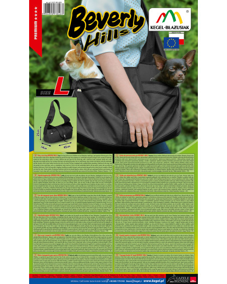 Pohodlná a praktická taška pro nošení malých psů. Poskytuje pohodlí přenášenému psovi i jeho majiteli. Zvířeti zajišťuje bezpečný prostor s pevnou základnou uvnitř tašky a majiteli díky použití ergonomické konstrukce s širokým a nastavitelným pásem na rameno umožňuje pohodlné nošení psa (psů) i během dlouhých procházek. Díky pečlivě zpracované konstrukci se přenášení psi cítí v tašce bezpečně a pohodlně a blízkost majitele navíc zvyšuje jejich pocit bezpečí. Taška má vyztužené dno, které psovi zajišťuje pevnou základu, a kapsy, ve kterých lze uschovat drobné předměty, například telefon, vodítko, pamlsky atd. Taška umožňuje chovateli snadné a pohodlné přenášení zvířete, přičemž může mít obě ruce volné.