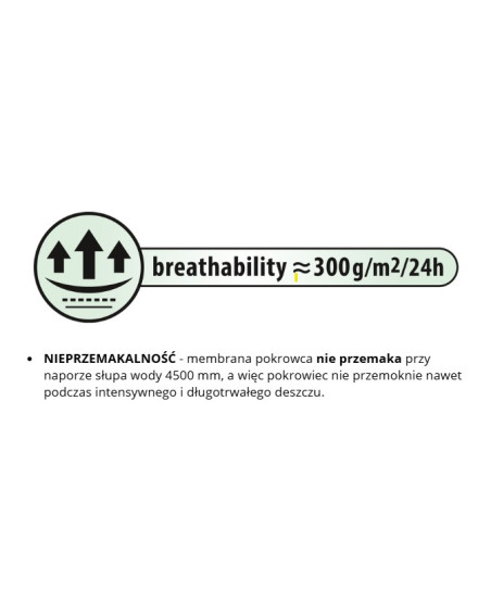 zůstává nepromokavá dokonce i za intenzívního deště, zároveň je prodyšná a odvádí vlhkost ven