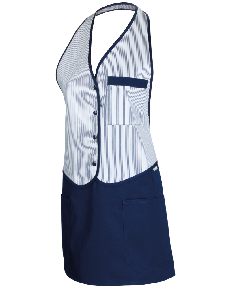 Šatová zástěra gastro (Bílá,Tmavomodrá)