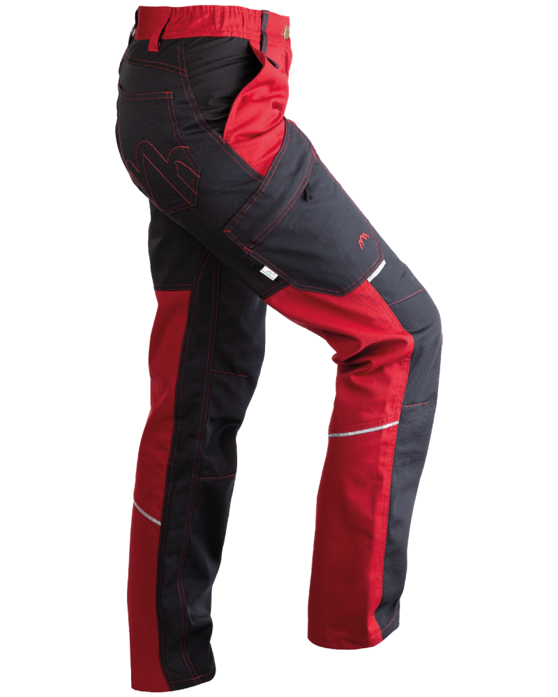 - Na zadní straně nohavic a po bocích kapsách reflexní prvky.