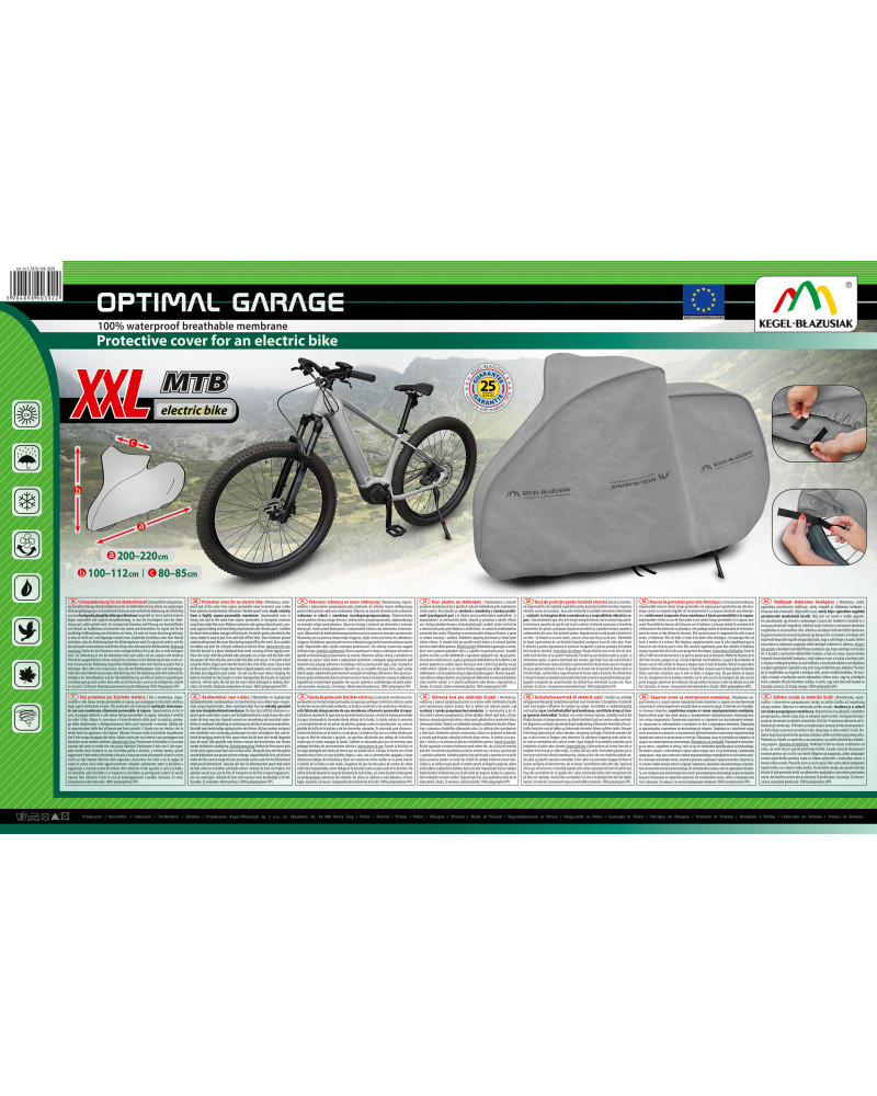 Nepromokavá a zároveň prodyšná membránová krycí plachta k ochraně elektrokola proti nepříznivým vlivům počasí. Krycí plachta je vyrobená z membrány s vysokou prodyšností (prostupností par) a je odolná proti povětrnostním podmínkám. Je nepromokavá i za intenzívního deště, zároveň je prodyšná a odvádí vlhkost ven. Snižuje působení koroze a stárnutí plastových součástí, chrání svrchní lak a chromované prvky proti blednutí a ztrátě lesku. Je určená ke krátkodobému uschování kola venku. Připevňuje se pomocí pružné stahovací tkanice, a proto se snadno nasazuje i sundává. Dodatečné uchycení ke kolům a zapínání pod kolem ji chrání proti stržení větrem. Je vhodná také pro použití uvnitř budov a k ochraně jízdního kola bez elektrického pohonu.