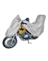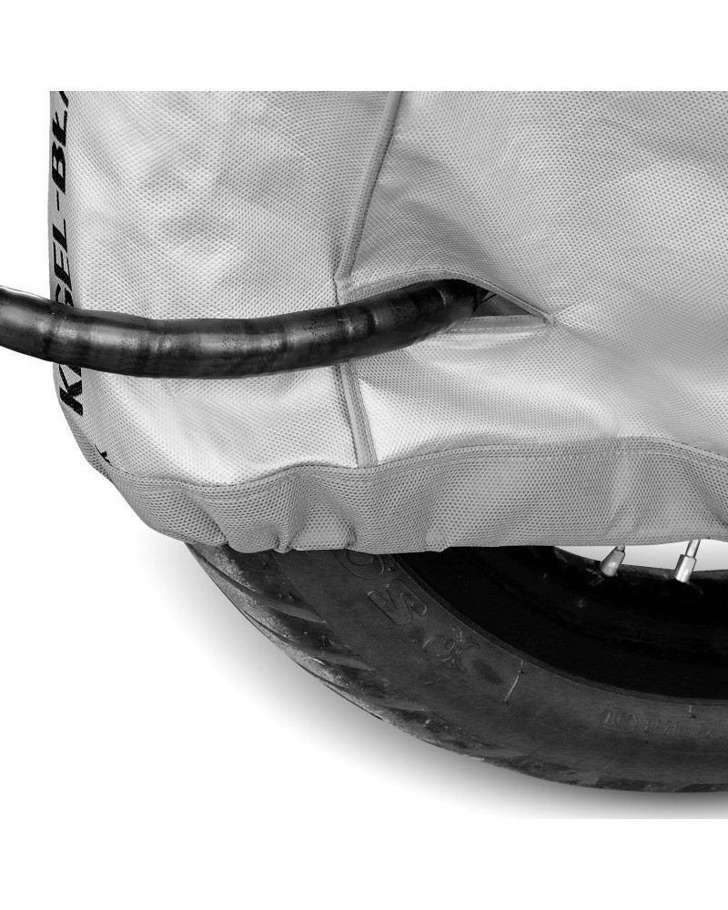 Nepromokavá a zároveň prodyšná membránová krycí plachta k ochraně motocyklu se spalovacím nebo elektrickým motorem proti nepříznivému počasí. Krycí plachta je vyrobená z membrány s vysokou prodyšností (prostupností par) a je odolná proti povětrnostním vlivům. Zůstává nepromokavá dokonce za intenzívního deště, zároveň je prodyšná a odvádí vlhkost ven. Chrání proti dešti, sněhu, jinovatce, slunečním paprskům (škodlivému UV záření) a nečistotám, jako je prach, ptačí trus nebo míza stromů. Snižuje působení koroze a stárnutí plastových součástí, chrání svrchní lak a chromované prvky proti blednutí a ztrátě lesku. Je určená ke krátkodobému i dlouhodobému venkovnímu parkování motocyklu se spalovacím motorem a ke krátkodobému venkovnímu parkování motocyklu s elektromotorem. Je vhodná také k použití uvnitř budov. Stahovací lanko a dodatečné zapínání pod motocyklem ji chrání proti stržení větrem. V krycí plachtě se nacházejí otvory, přes které je motocykl možné uzamknout za přední kolo pomocí zámku ke stojanu.
