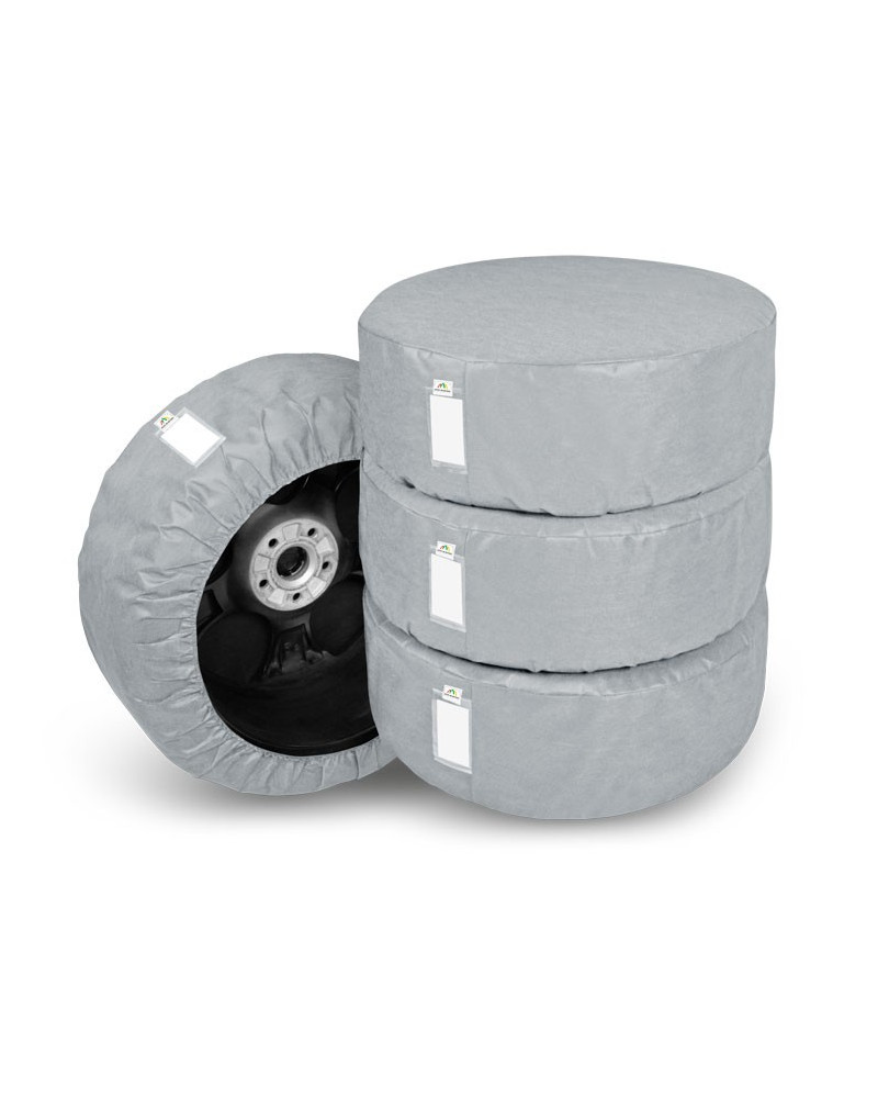 Sada 4 vysoce kvalitních potahů SEASON – určených k sezónnímu skladování pneumatik a automobilových kol, obzvláště těch s hliníkovými disky (kryjí pneumatiky společně s disky). Jsou vyrobeny z nesnadno promokavého, paropropustného materiálu, který zajišťuje správnou cirkulaci vzduchu uvnitř potahů a zabraňuje vzniku koroze. Velmi dobře vypadají v garáži. Během delší přestávky v jejich používání se na nich neusazuje prach. Po stažení potahu budou kola/pneumatiky jako nové - zůstanou ve stejném stavu, v jakém jsme je zanechali. Potahy během zvedání kol velmi dobře chrání před znečištěním oblečení. Potahy mají všitou kapsičku na popisový štítek pneumatiky/kola. Velice snadno se nasazují a stahují.