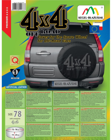 Voděodolný, vyrobený z pevné a odolné ekokůže. Chrání rezervní kolo před nepříznivými vlivy prostředí a prostředky zimní údržby silnic. Má ochrannou i estetickou funkci. Vyrobeno z černého materiálu s módním potiskem. Snadno se nasazuje pomocí elastické upevňovací šňůrky.