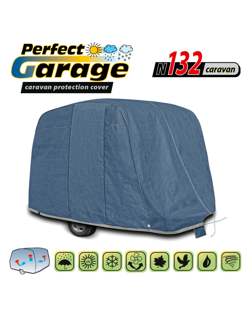 Ušitá z nepromokavé paropropustné membrány a nesnadno promokavých, velmi dobře páru propouštějících látek zajišťuje správný oběh vzduchu uvnitř plachty. Uchovává si téměř úplnou těsnost, zároveň zabraňuje hromadění vlhkosti uvnitř plachty. Je dobře přizpůsobená. Díky své konstrukci a zvláštním vlastnostem efektivně chrání celý přívěs (společně s dolními částmi) před nepříznivým vlivem prostředí. Je odolná vůči působení UV záření. Chrání před deštěm, sněhem, námrazou, větrem, pylem rostlin, listy, šťávami ze stromů, ptačími exkrementy. Zabraňuje blednutí, zmatnění laku a chromovaných dílů. Chrání před většinou poškrábání. Omezuje korozi. Díky silnému připevnění s pomocí na spony zapínaných pásů zaručuje bezpečnost dokonce i v případě silných nárazů větru. Velmi snadno se nasazuje a sundává a po složení nezabere příliš místa. Z vnitřní strany plachty je materiál hladký, bezpečný pro karosérii a jiné části vozidla - nezpůsobuje poškrábání. Je vyrobena v tmavě popelavé barvě - tlumené a praktické, s tmavě modrými detaily. Membrane Garage je vícesezónní výrobek, který vám bude sloužit po mnoho let. Poskytnuta až do 30-měsíční záruka vám dá jistotu, že kupujete nejvyšší kvality výrobku.